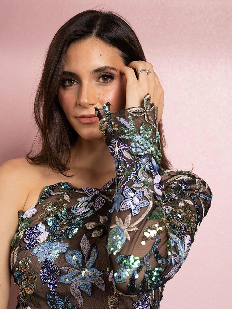 Introducing the Bailee Maxi Dress, the perfect addition to your holiday wardrobe. Crafted for elegance and style, this dress features a sexy one shoulder design, long sleeves, and a high split for a touch of sophistication. The embroidered details add a subtle touch of glamour. Elevate your fashion game with our 2024 collection.