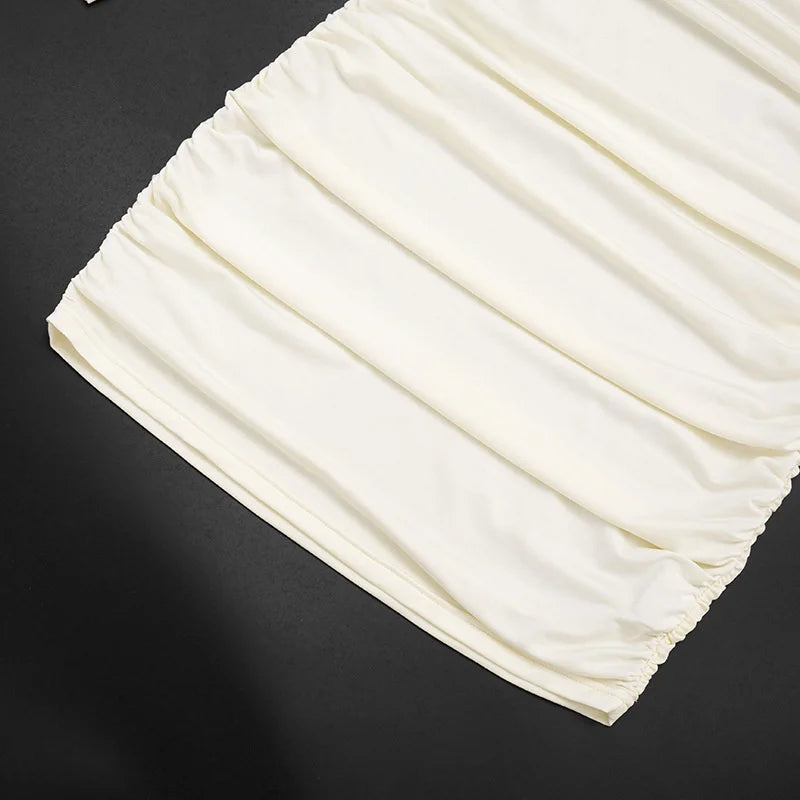 The Rylee Mini Dress features an off-shoulder design with long sleeves, combining elegance and allure. Its strapless and backless construction highlights the shoulders and back, while the ruched bodycon silhouette offers a flattering, slim fit. Perfect for clubbing or parties, this dress balances fashion-forward style with a confident, sexy edge.